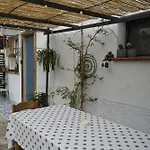 The kitchen amenities at Podere Sant'Anna B&B -Bambu Room villa feature kitchenware, provided in an outdoor dining area. The Atri property can be reached by car in 31 minutes from Abruzzo airport.